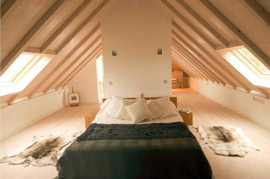 Как правило, планировка и меблировка спальни, расположенной на мансардном этаже, зависит от формы и вида крыши – одно- или двускатная, шатровая, многоскатная.