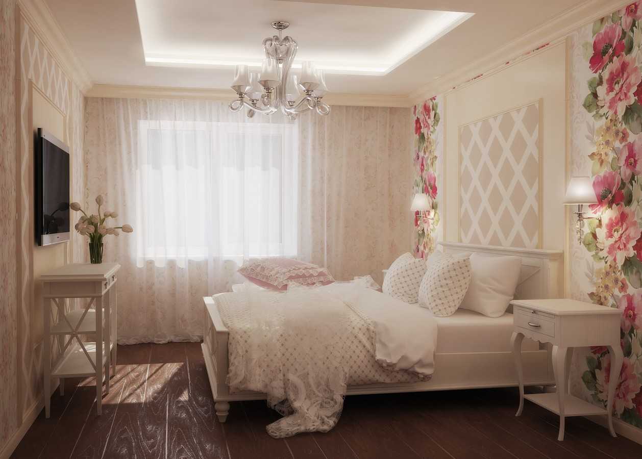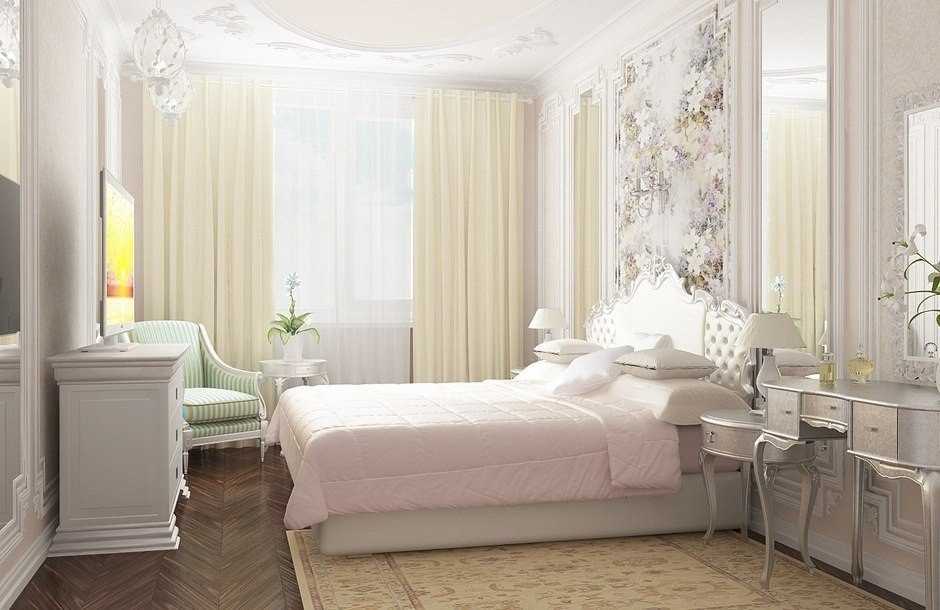Нежная и просторная спальняИсточник sakhexpo.ru