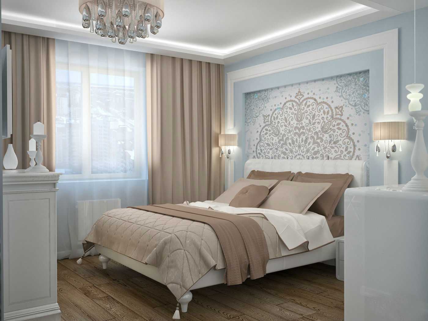 Чтобы сделать красивую «опочивальню», нужно правильное сочетание цвета пола, потолка и стен. После выбора базового оттенка, другие тона должны быть максимально приближены к нему. Если хочется освежить комнату, то можно выбрать яркий акцент.