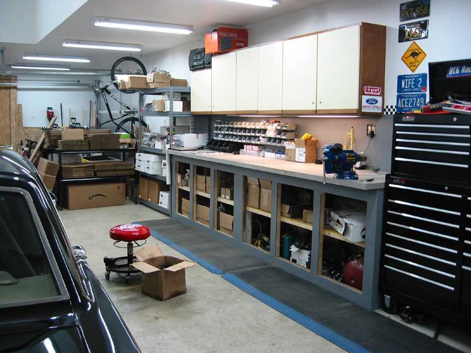 Лучше всего под стеллажи оборудовать стену, которая находится дальше всего от въезда в гараж, т. к. именно там удобно расположить инструменты, станки, верстаки и многое другое.