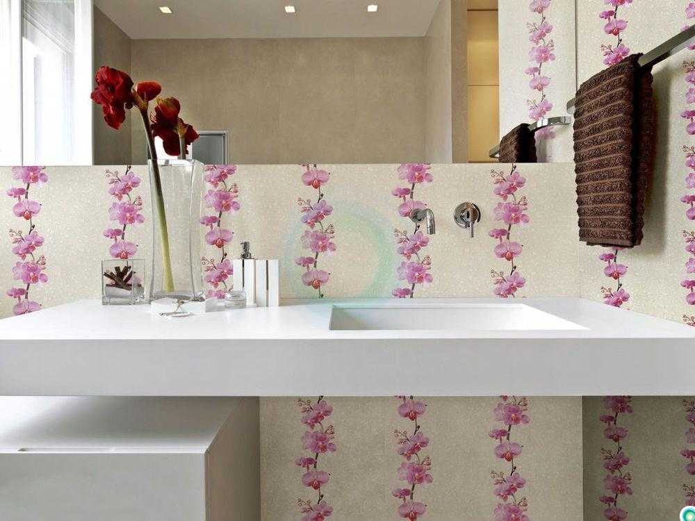 - Широкий ассортимент фактуры, цвета, рисунка позволяет под любой стиль произвести ремонт в ванной комнаты панелями ПВХ, фото наглядно это демонстрируют. А нанесение широкоформатной печати на планки расширяет поле деятельности для дизайнера.
