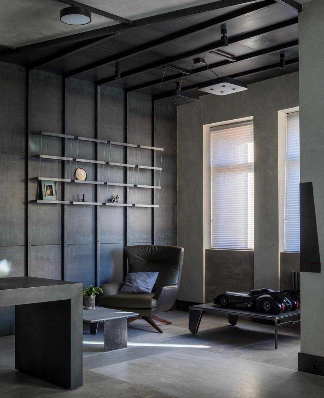 Гостиная также приобретет характер благодаря использованию мебели из бетона. Кожаная обивка на диване или креслах — не менее важный элемент интерьера в индустриальном стиле, а для людей, предпочитающих немного более светлую атмосферу, обивка из льна может быть интересной идеей.
