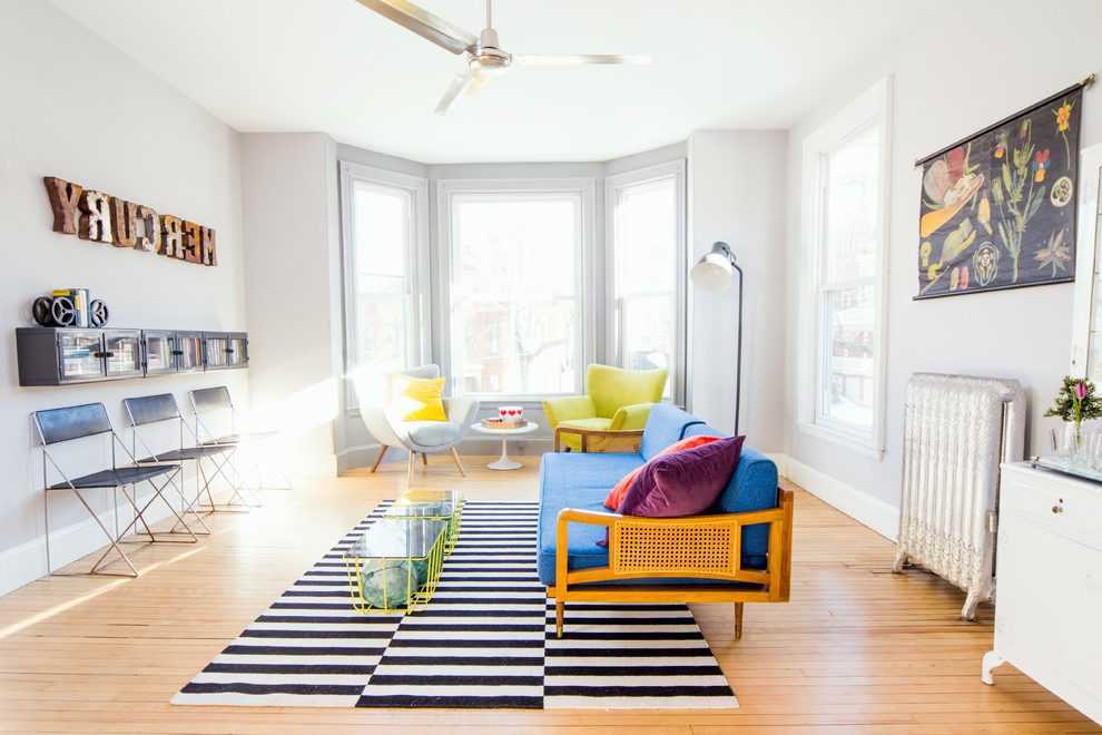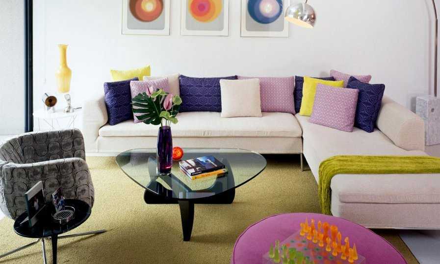 Яркий и позитивный дизайн гостиной в стиле лофт