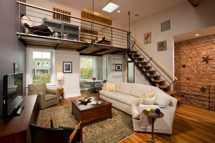 2. Деревянные или металлические лестницы. Они будут отлично смотреться как в двухэтажном доме, так и в двухуровневой квартире.