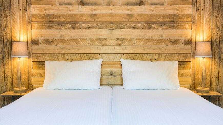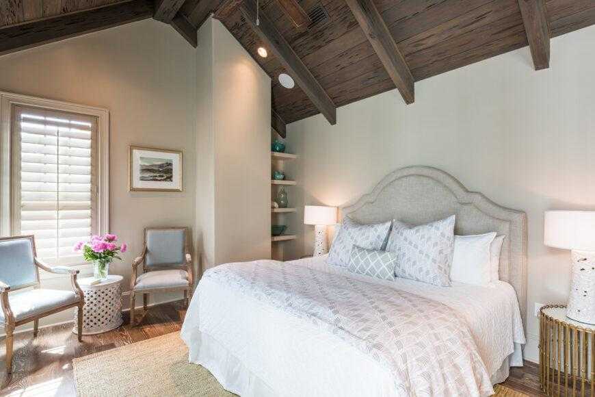 Центральное местоположение у кровати, которая чаще оснащается прямоугольным каркасом. Ортопедический матрас гарантирует правильное положение позвоночнику, предупреждая проблемы со спиной. Выбирают его соответственно возрасту и весу. У классического изголовья резная форма и мягкая «каретная» обивка из бархата, кожи или жаккарда. Бортики по периметру станут подставкой для кружек, книг, ноутбука.