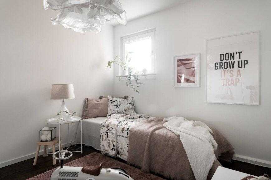 Интерьер маленькой спальни продумывается до мелочей. Здесь нет места крупным гарнитурам, тяжёлой драпировке и объёмным люстрам. Лидирует функциональность, гарантируемая лаконичным минимализмом, в котором сочетается древесина и камень, бетон и пластик, металл и стекло. Течение требует: