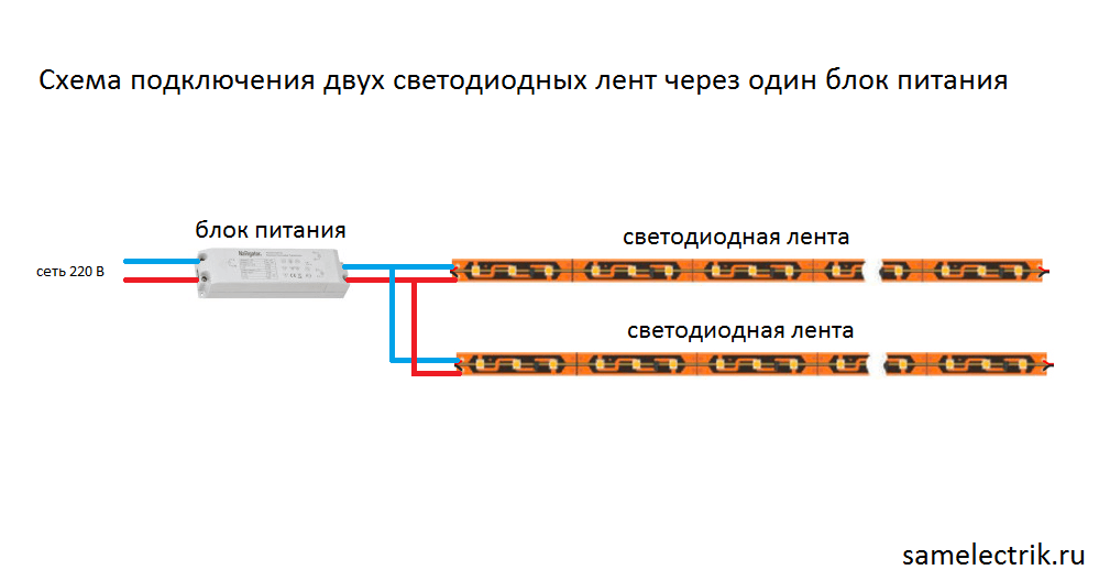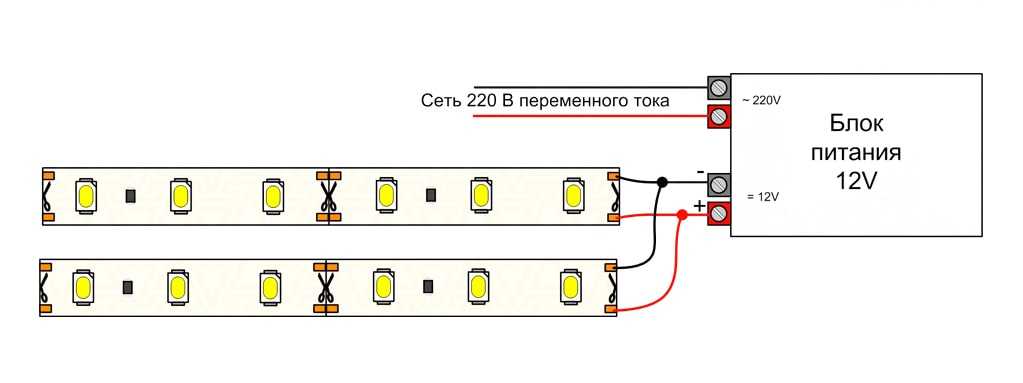 Схема подключения одноцветной ленты