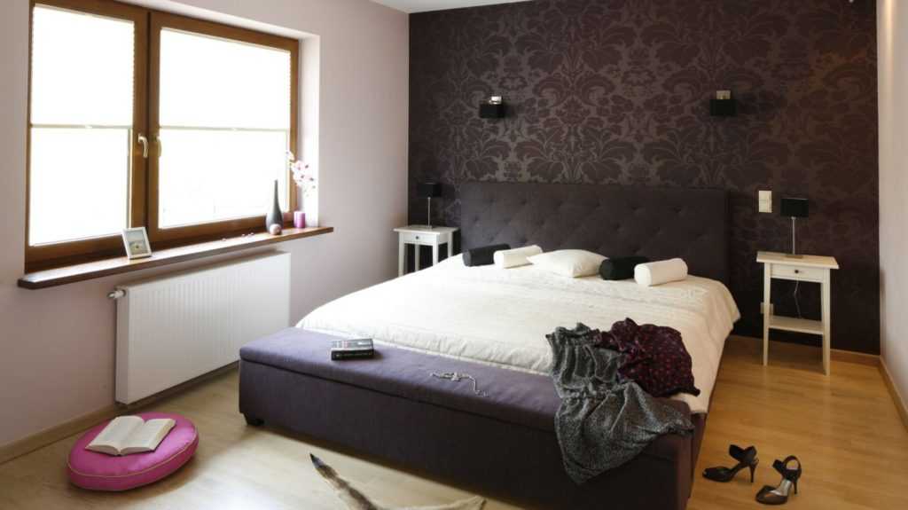 Разные обои. Несколько лет назад на пике популярности было использование обоев с рисунком для отделки одной стены, чаще той, около которой располагалось изголовье кровати. Сейчас это уходит в прошлое. Безвкусным считают и украшение стены с принтом картиной.