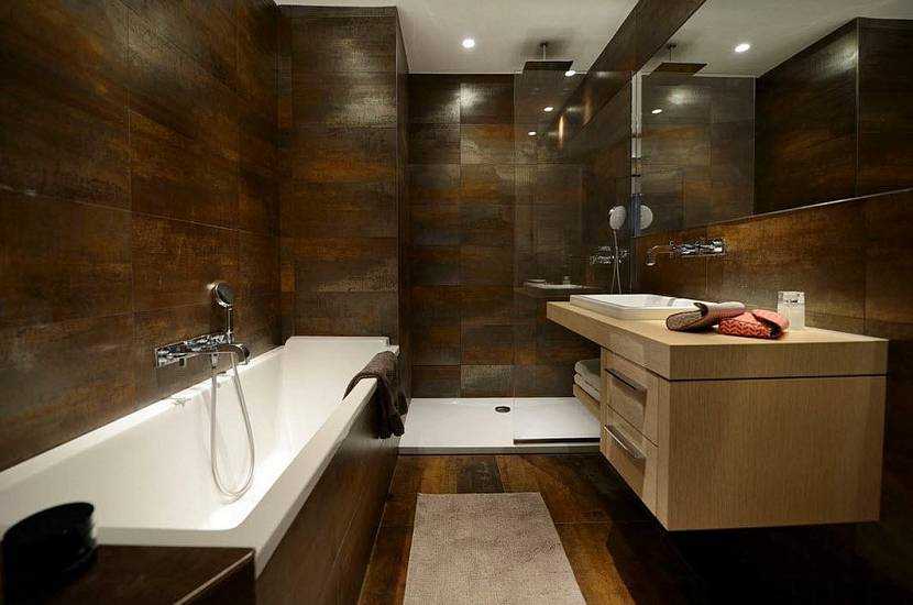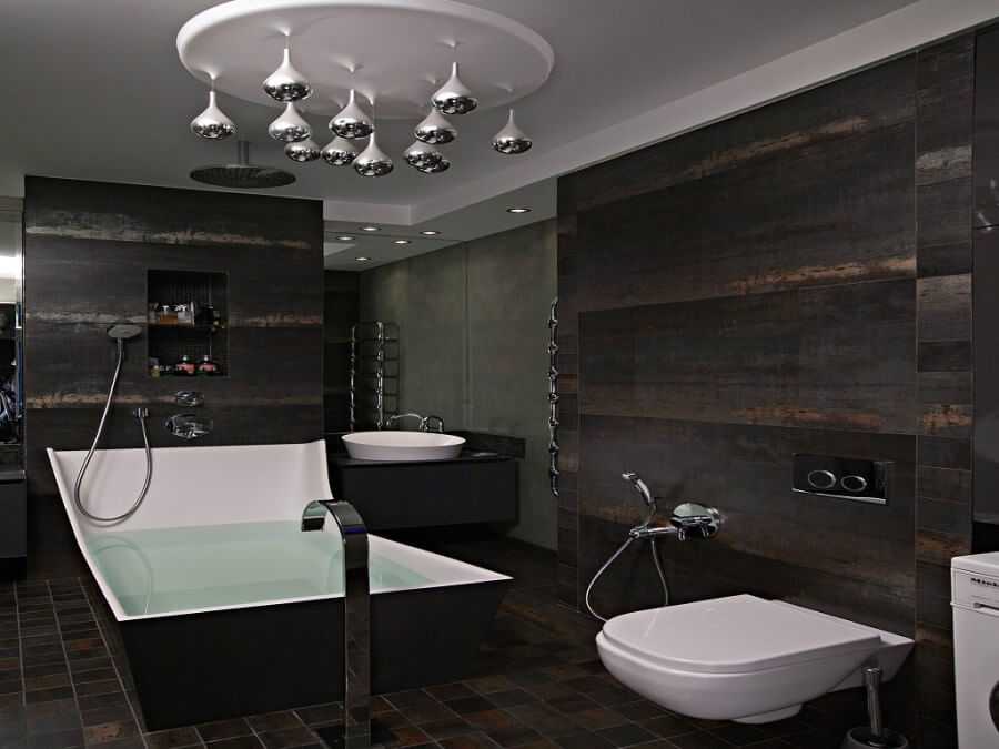 Во многих квартирах помещение ванной не отличается большим размером. Применение матовых темных покрытий здесь нежелательно.