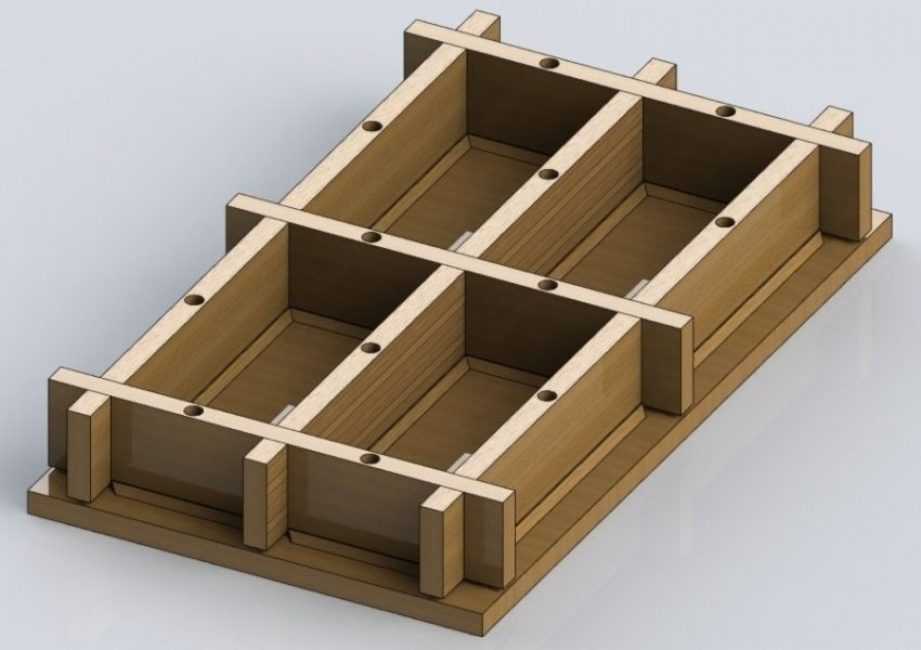 Все элементы опалубки должны быть пристыковываться к друг другу плотно. Иначе при вытекании жидкости из раствора прочность плиток уменьшится. Расположение деталей выверяется строительным уровнем. Упрочить опалубку можно металлическими уголками.
