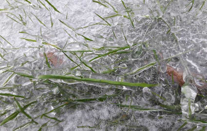 Чтобы предотвратить загнивание травы и повреждение корневой системы, необходимо осторожно разбивать лед и убирать лишний снег с мест, где располагается газон