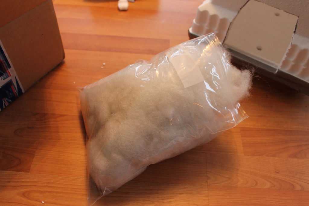 - Поместите внутрь пакета вату или другой утеплитель (я использовал пакет объемом 4л). Фото 1