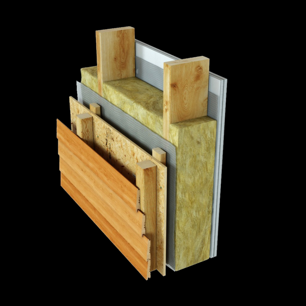 Доски, из которых делают лаги, стойки и стропила, имеют свою ширину – чаще 150 мм, хотя они бывают и меньше. Это расстояние заполняется минеральной ватой или другими утеплителями. Фактически, получается настоящий «слоеный пирог» из разных материалов, которые будут защищать внутренне наполнение от воды, ветра, огня, и сделают строение красивым.