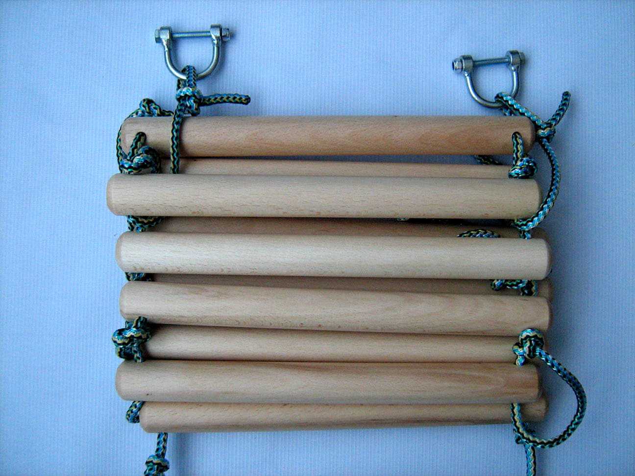 Изделия, не имеющие ступенек из дерева и пластика, просты в производстве и обработке. Вместо ступенек используют веревку, которую надо связать на требуемом расстоянии петлями.