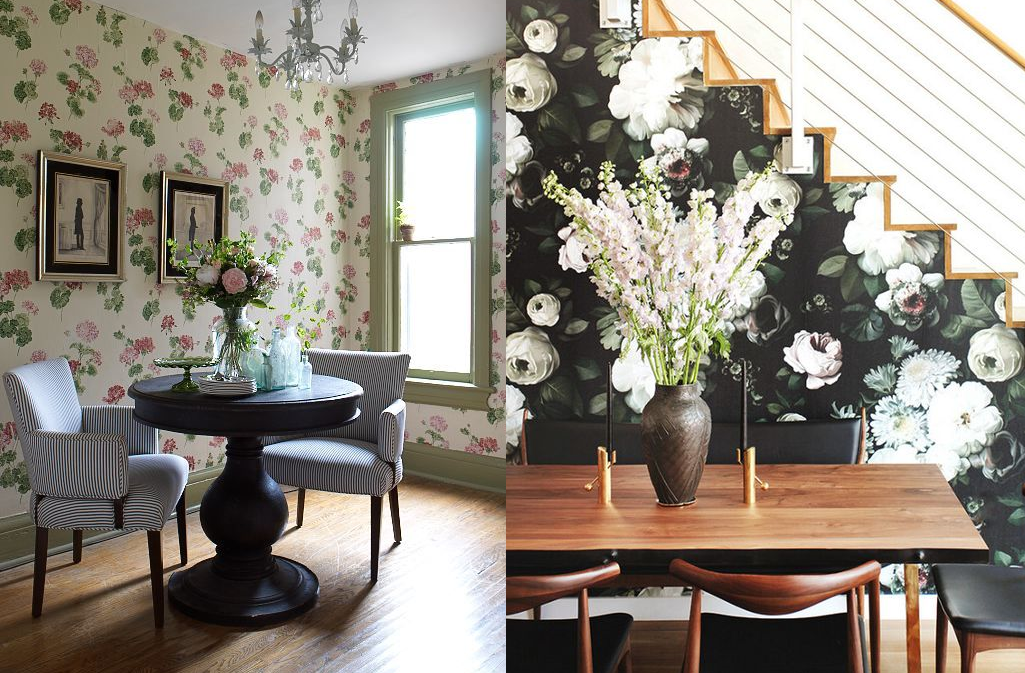 Типичное применение двух видов обоев: однотонных и с рисунком