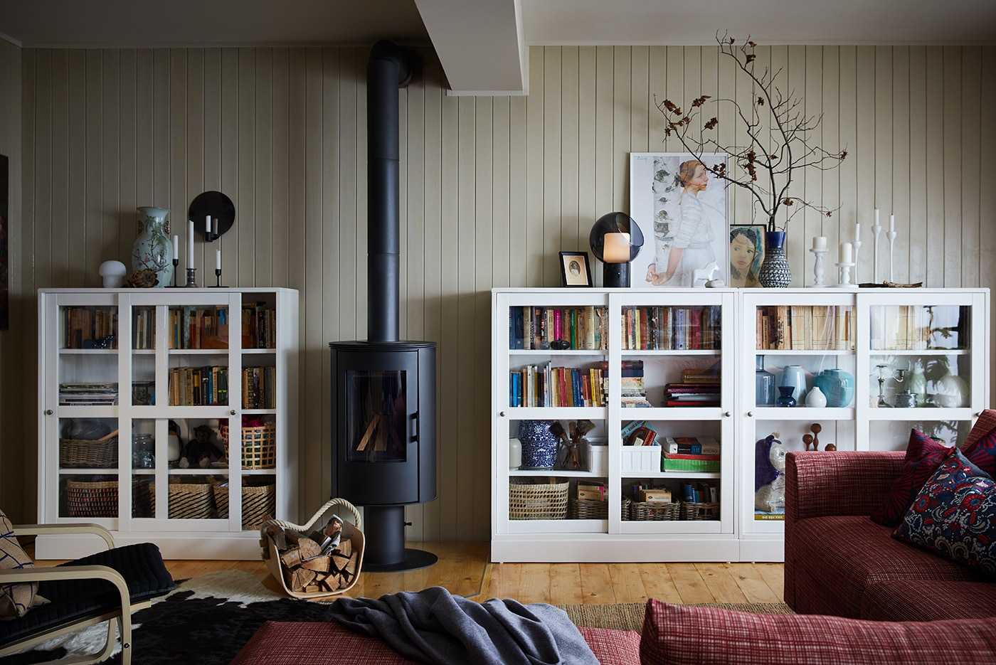 Простые и функциональные стеллажи ИВАР в интерьере гостиной