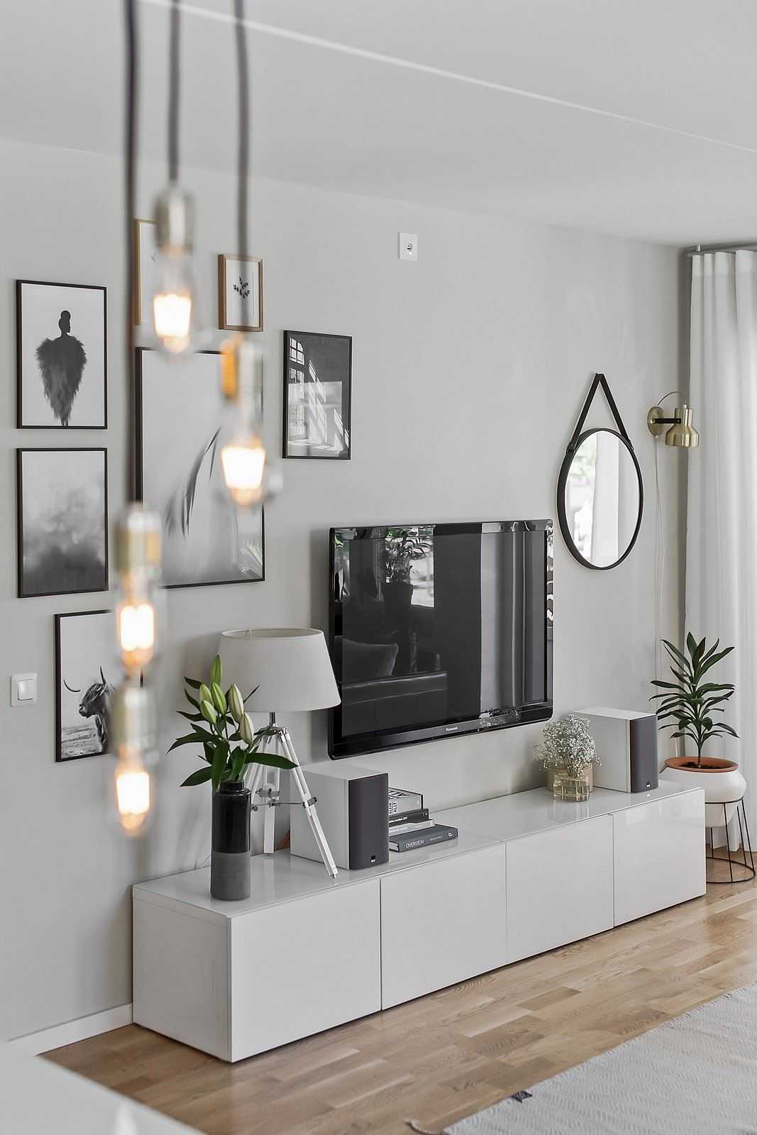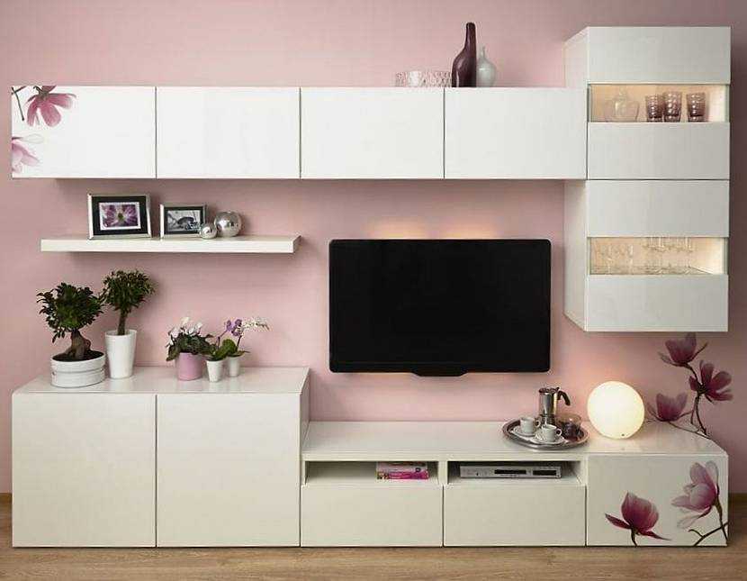 Белая стенка Хэмнес в гостиной: шкафы, тумба под ТВ и подвесной модуль