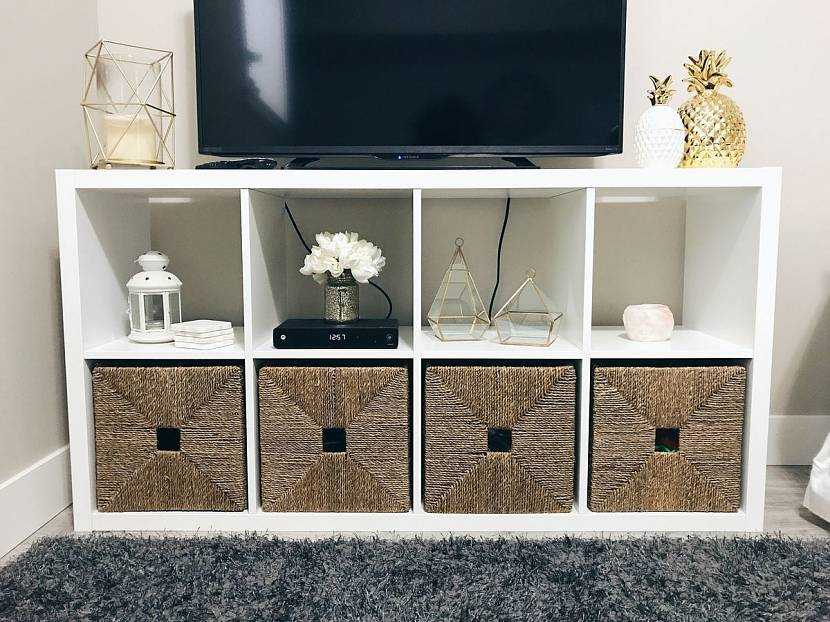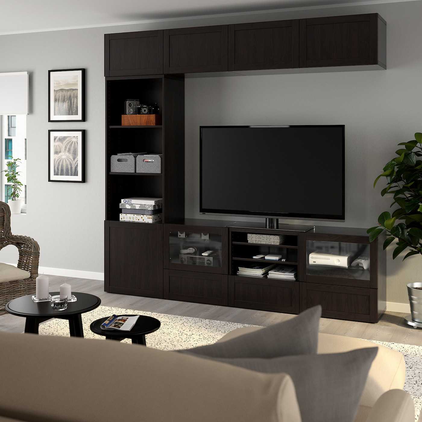 В серии «Хемнэс» тумбы под телеаппаратуру стоят 7 и 9 тысяч рублей, а комплект (состоящий из шкафа, стеллажа, тумбы и подвесной полки) – 29 тысяч рублей.