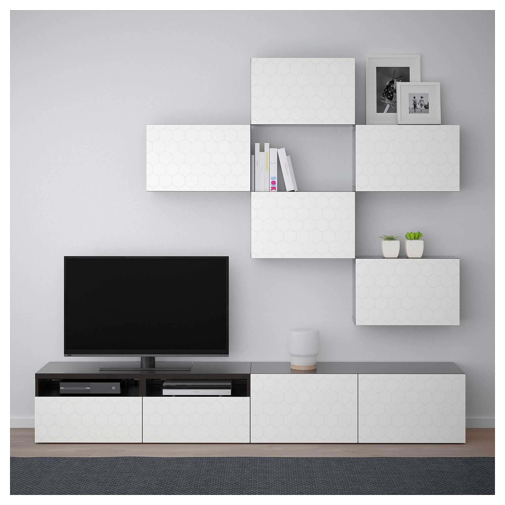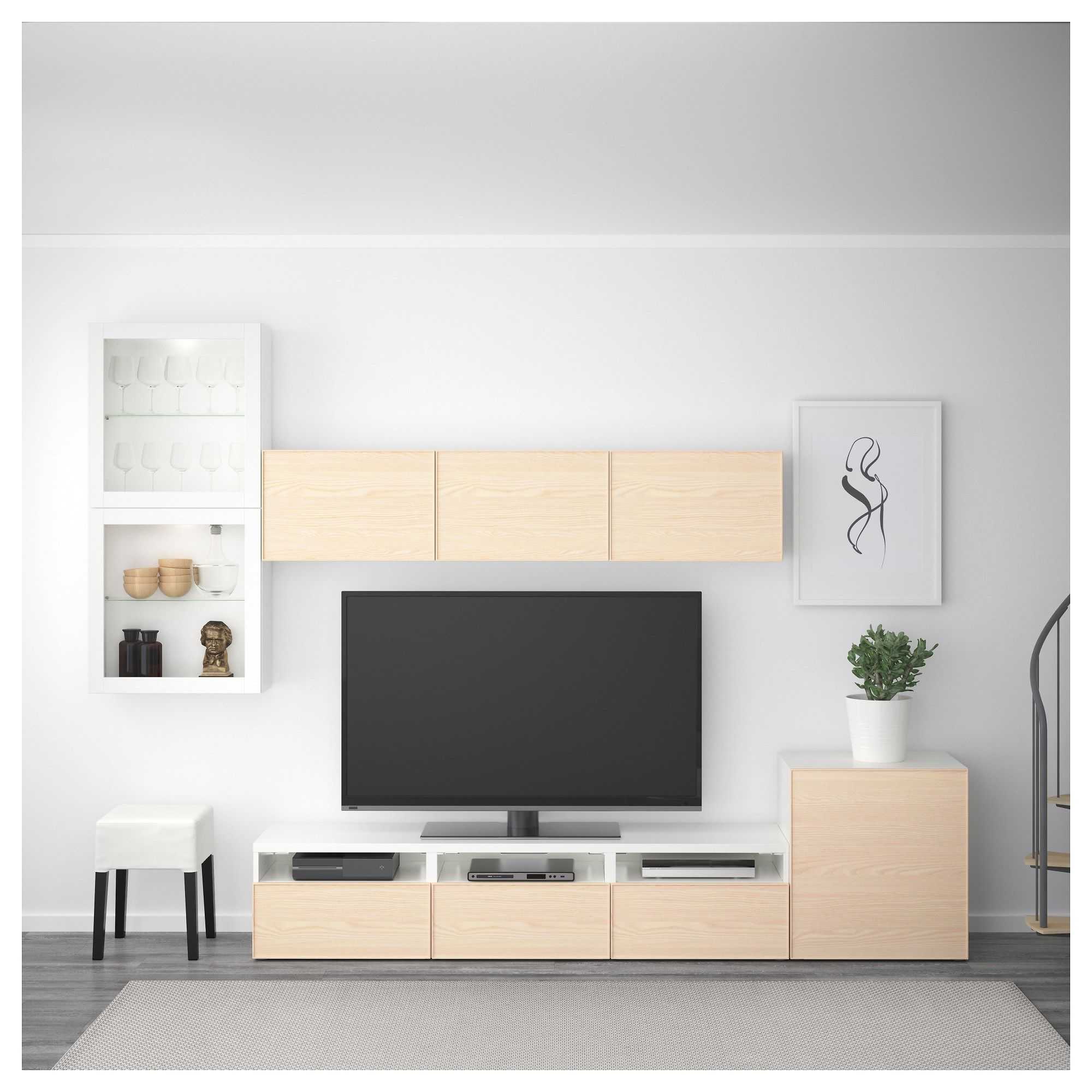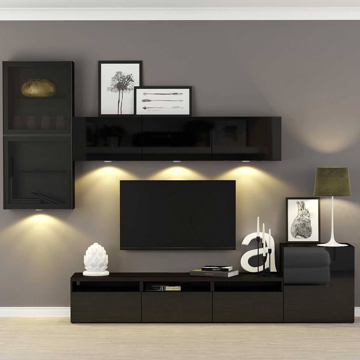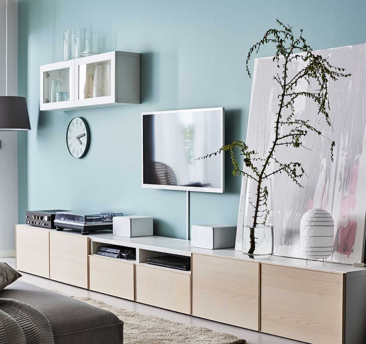 Низкая тумба БЕСТО для оформления гостиной и верхний подвесной шкаф