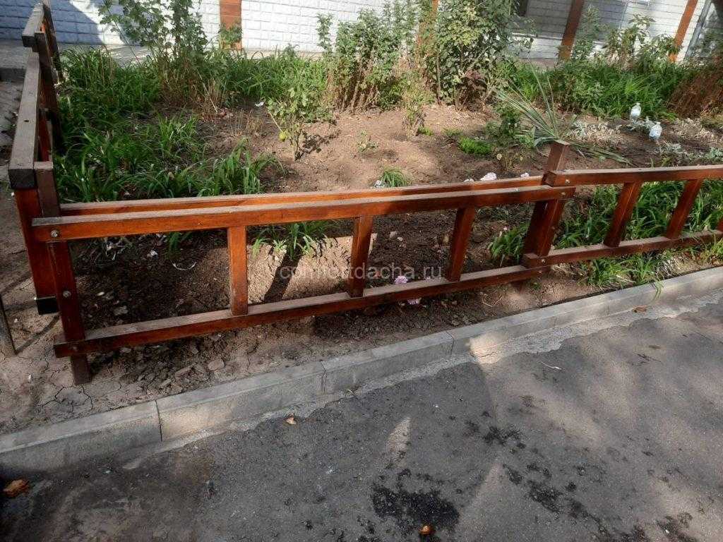 Интересно выглядит и забор для цветника своими руками из декоративных деревянных плашек. Остановив выбор на светлом оттенке древесины, высадите в цветник яркие кусты. Такое сооружение не обязательно вкапывать в землю, так как оно будет надежно стоять само по себе на плоской опоре.