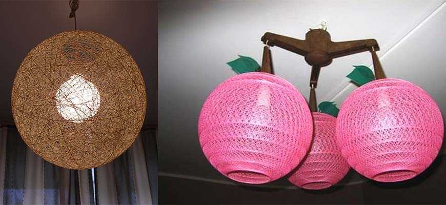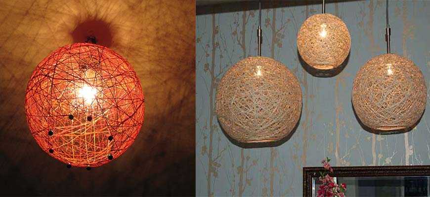 В настоящий момент особую популярность приобретает люстра, выполненная в виде обмотки из нитей. Такая люстра очень быстро делается, да и смотрится очень красиво. Для изготовления такой люстры потребуется большое количество клея ПВА, но и понадобится обыкновенный шар или другую сферу.