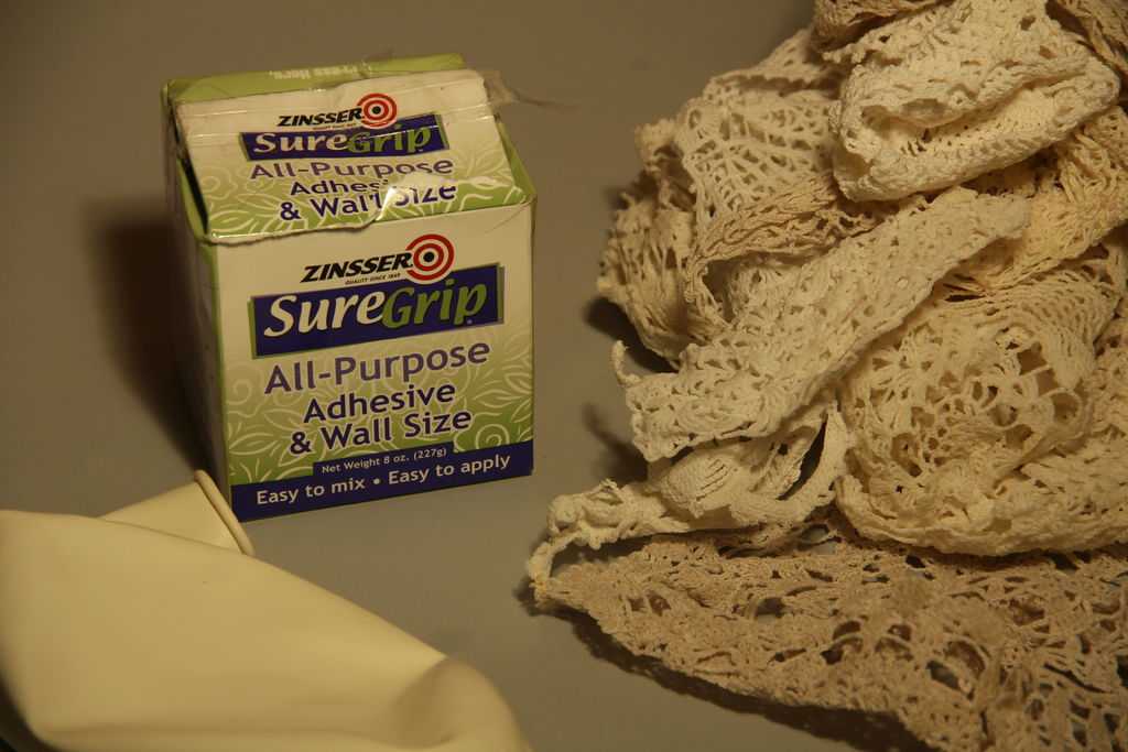 - ПВА налить в пластмассовую емкость и основательно обработать им нитки (Не желательно наносить клей сразу на всю длину ниток! Обрабатывайте их по мере наматывания на шар!).