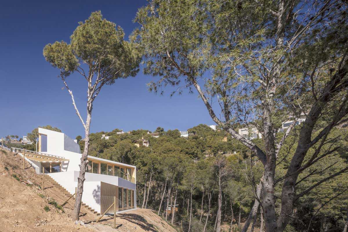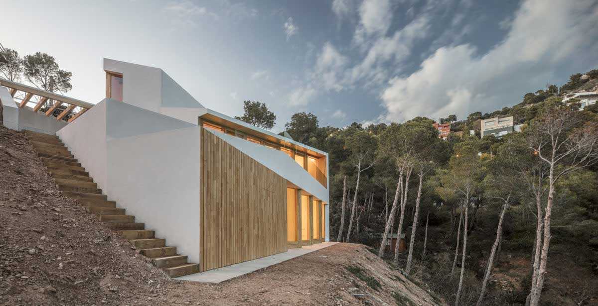 двухэтажный дом на небольшом склоне дает возможность увеличить пространство