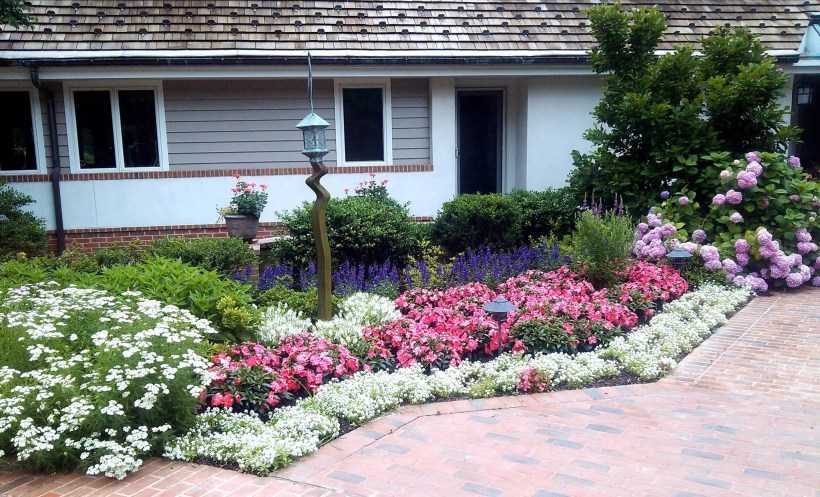 Если соблюдать все указанные правила, то можно создать гармоничный ландшафтный дизайн перед домом, который будет все лето радовать взгляд пышным цветением.