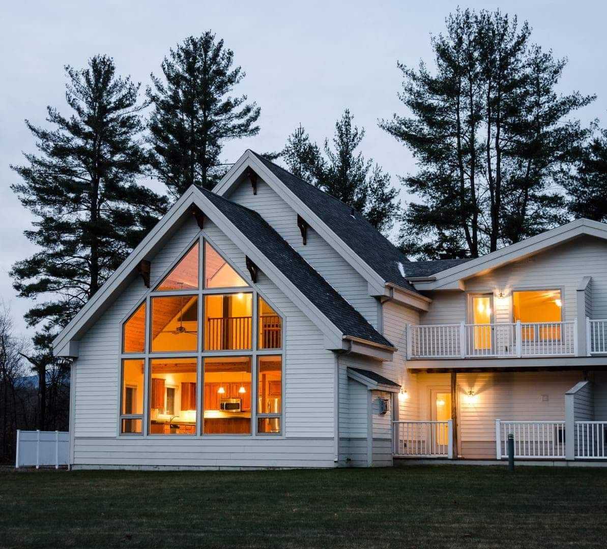 Архитектурное направление шале зародилось в Альпах, но у него есть общие черты со скандинавским стилем. В обоих случаях дома возводятся преимущественно из древесины, имеют веранду и покатую крышу. На фото представлен образец сочетания этих стилей, в котором к классическому варианту шале добавлено скандинавское панорамное остекление.