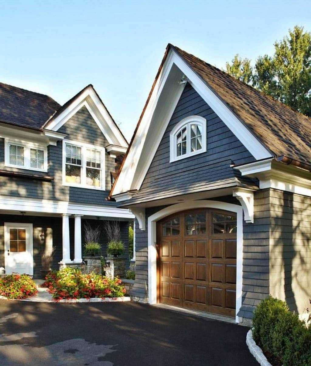 Современное и практичное экстерьерное решение. Серые оттенки отлично совмещаются со всеми базовыми тонами скандинавской стилистики.