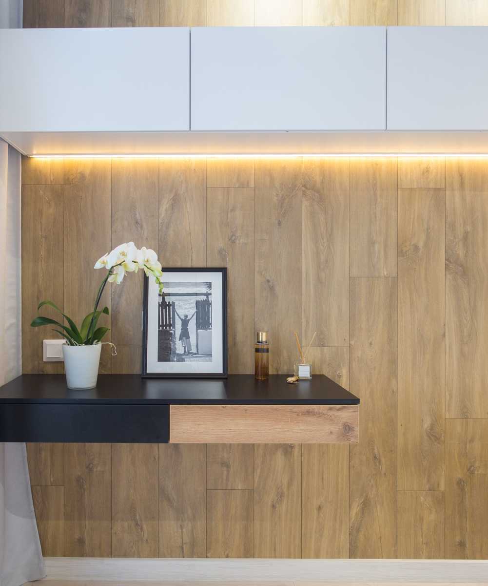 Учитывайте возможность использования стен в качестве экономии пространства маленькой спальни. Подвижные столешницы, которые прикрепляются к стене, будут прекрасным решением экономии рабочей зоны в спальной комнате. Такой стол не займет большого пространства, и объем помещения будет зрительно свободнее.