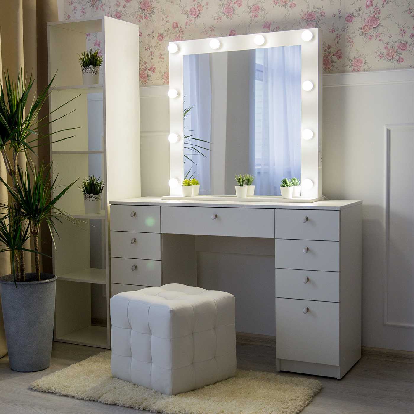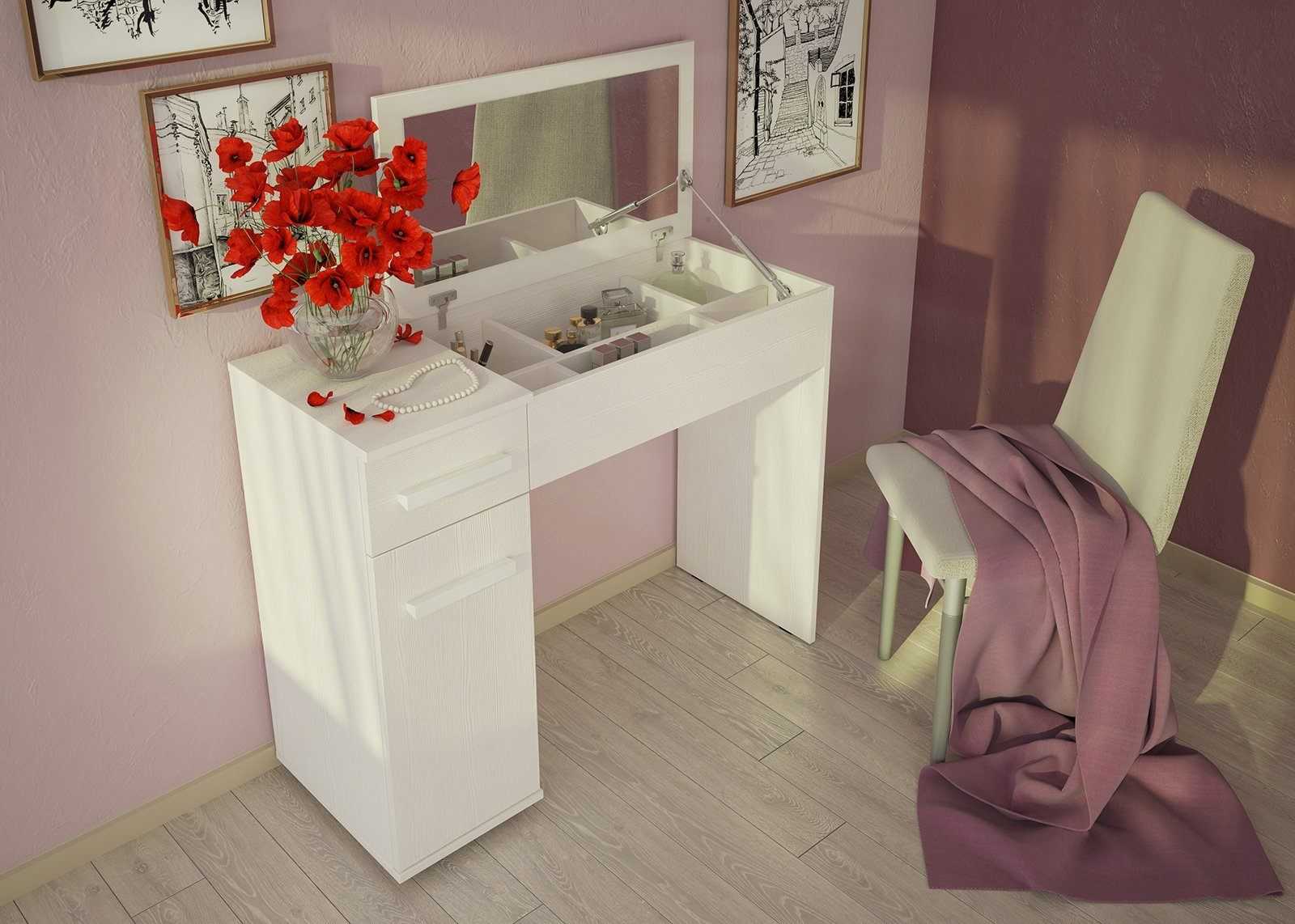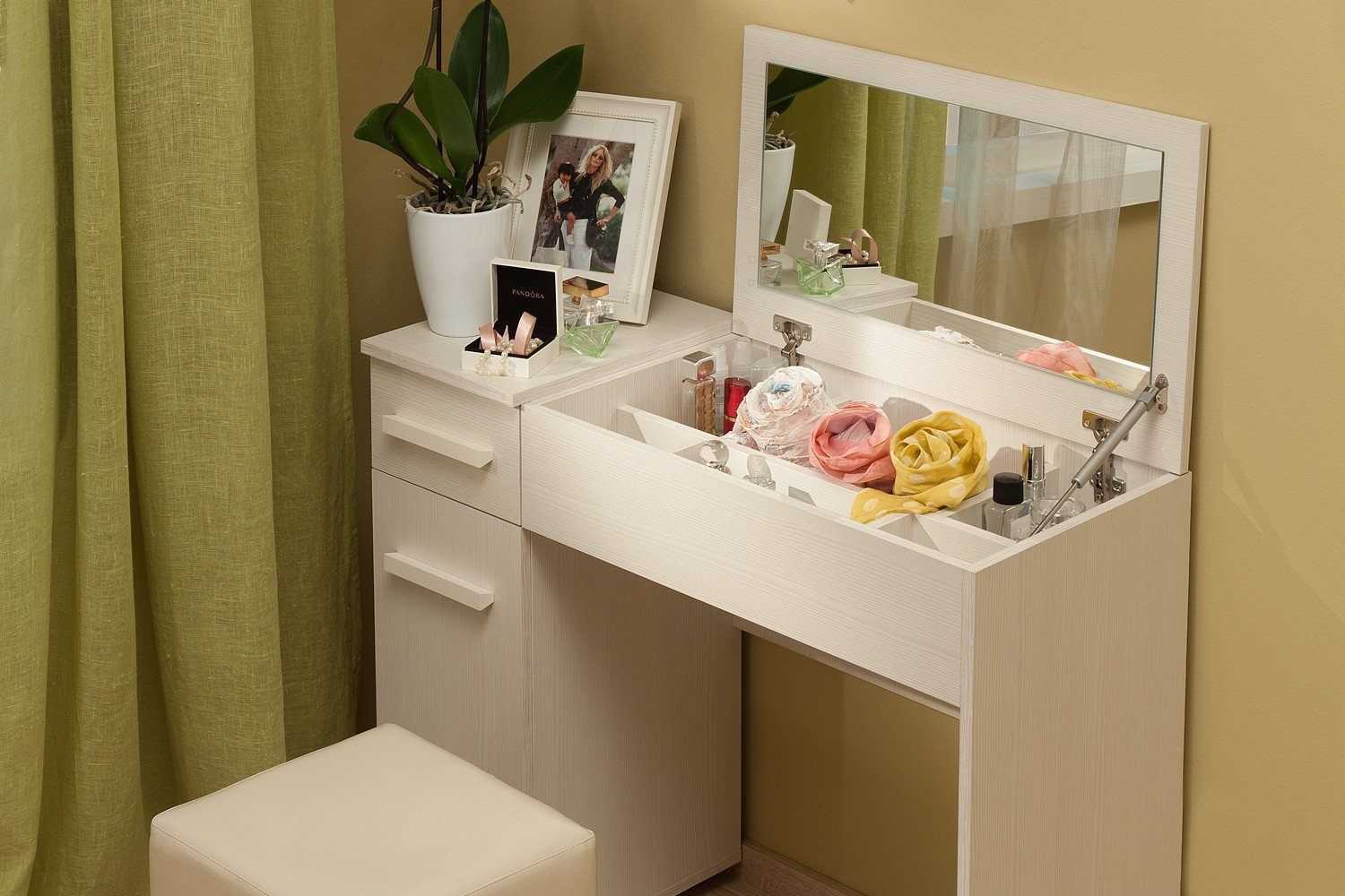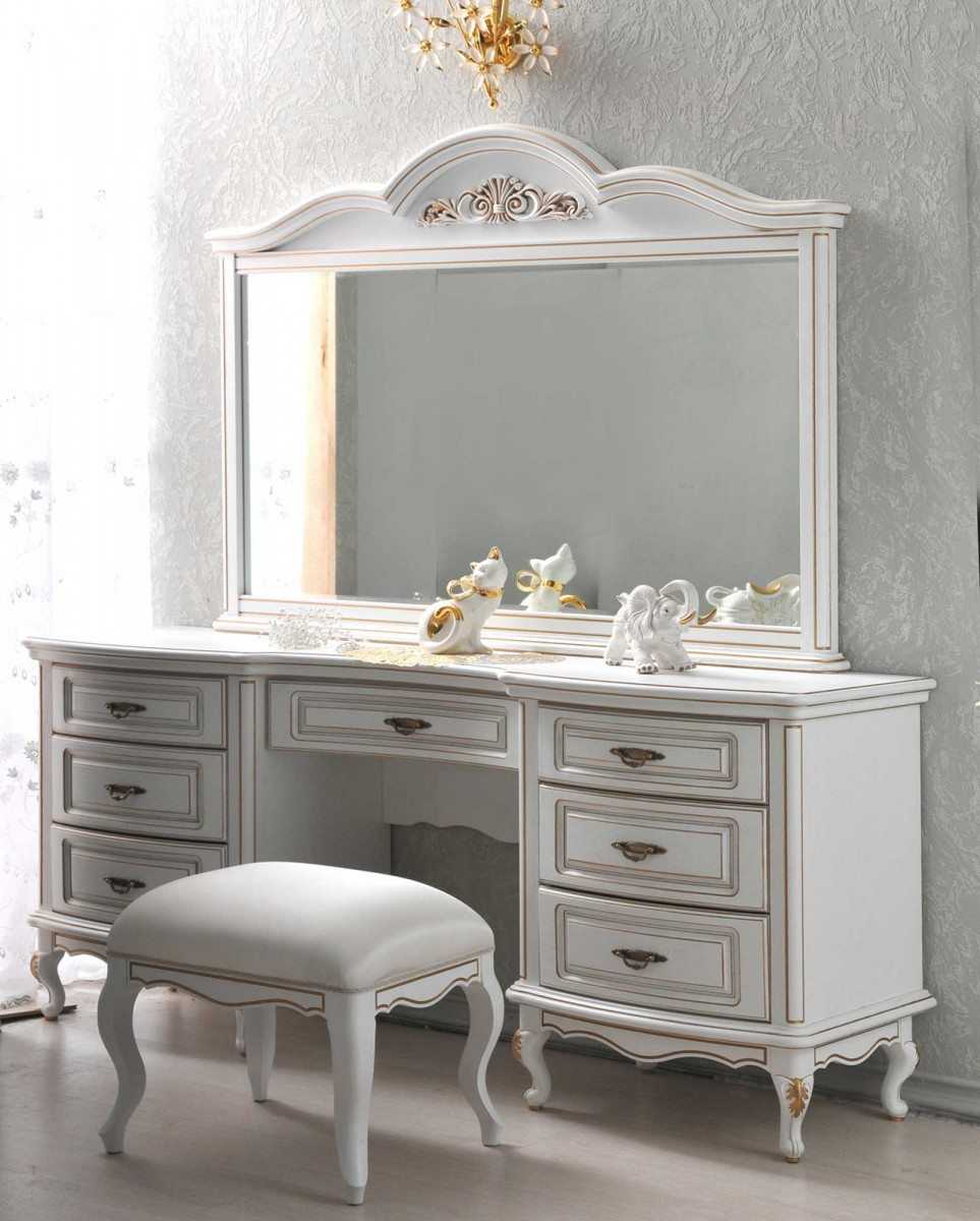 Туалетные столики характеризуются различными стилями, размерами, цветами и рядом функциональных возможностей. Существуют модели с зеркалом или без него, наборы с сиденьем, а также мебель в виде комодов в романтической стилизации