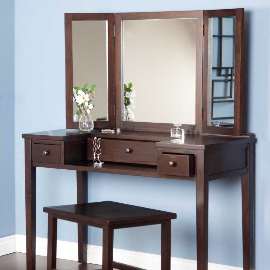 В последние сезоны особенно популярны зеркальные туалетные столики. Чаще всего они изготавливаются из светлого дерева или лакированных панелей ПВХ. Интересным предложением также является туалетный столик в форме консоли, верх и сиденье которого обтянуты экологической кожей. Кроме того, модели с зеркалом в стиле гламур выглядят потрясающе, где верх выполнен из стекла, а рама — из декоративного хромированного формованного металла. Покупателей чаще всего интересуют вечные модели, которые никогда не выходят из моды.