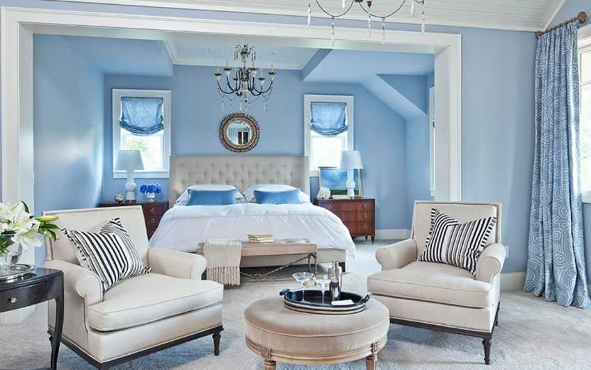 Психологи уверены, что оттенки синего способны охлаждать организм и успокаивать нервную систему. Такое оформление будет уместно в помещении, где обычно жарко. Кроме того, этот цвет помогает рассеивать излишнюю энергию и способствует засыпанию.