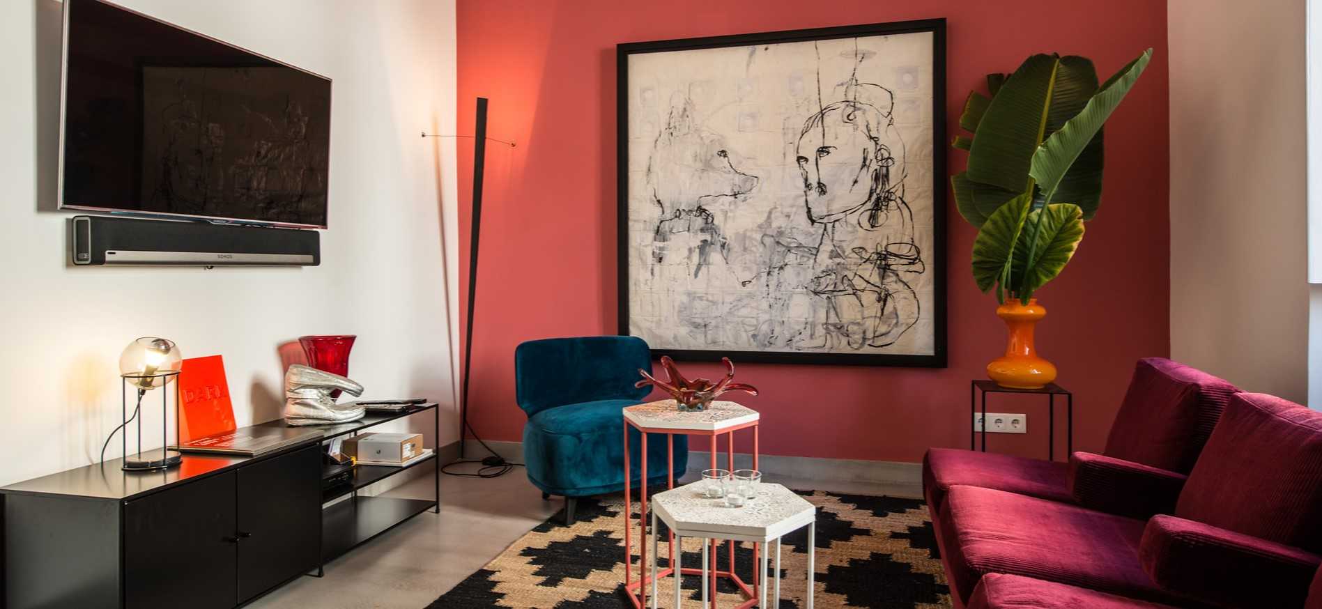 Если в интерьере гостиной в стиле Лофт, стена оформлена в обои или выкрашена в определенный цвет, то цвет корпуса для телевизора необходимо подбирать на контрасте с базовым цветом оформления стены.