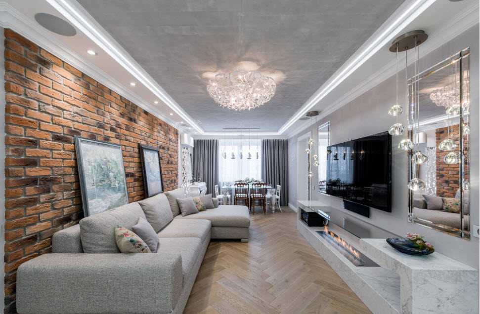 Чтобы правильно вписать телевизор в угол гостиной в стиле лофт, необходимо основываться на поддержании общего стиля интерьера. К примеру для Лофт характерная черта, это отделка стены кирпичной кладкой вот для такого решения необходимо правильно подобрать цвет корпуса телевизора. Лучше всего использовать черный или молочные цвета. Корпус телевизора в серебристом цвете на кирпичной стене не смотрится.