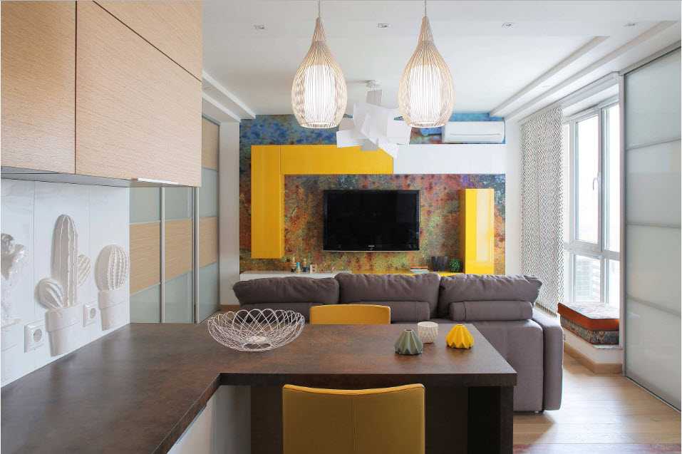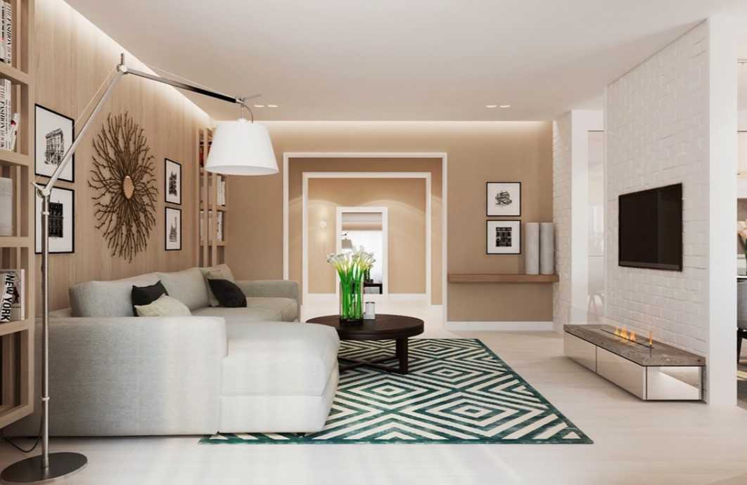 - при разделении гостиной комнаты на зоны, ТВ должен находиться именно в той части, которая будет приспособлена для отдыха;