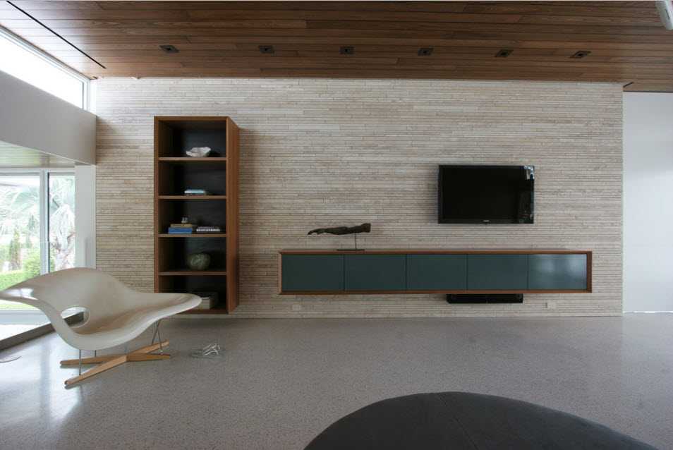 При проектировании следует стремиться не только украсить комнату, но и наиболее функционально использовать пространство. Поэтому полка для телевизора в большинстве случаев дополняется гармонично расположенными дополнительными полочками.